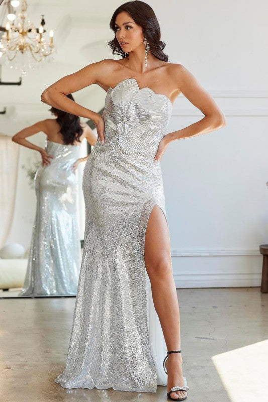 Big Flower Mermaid Maxi Dress- Sequin Straight Neckline Front Top Big Flower Mermaid Maxi Dress- Wedding Guest Dress- Bridesmaid Dress- Prom Dress- 100% Polyester