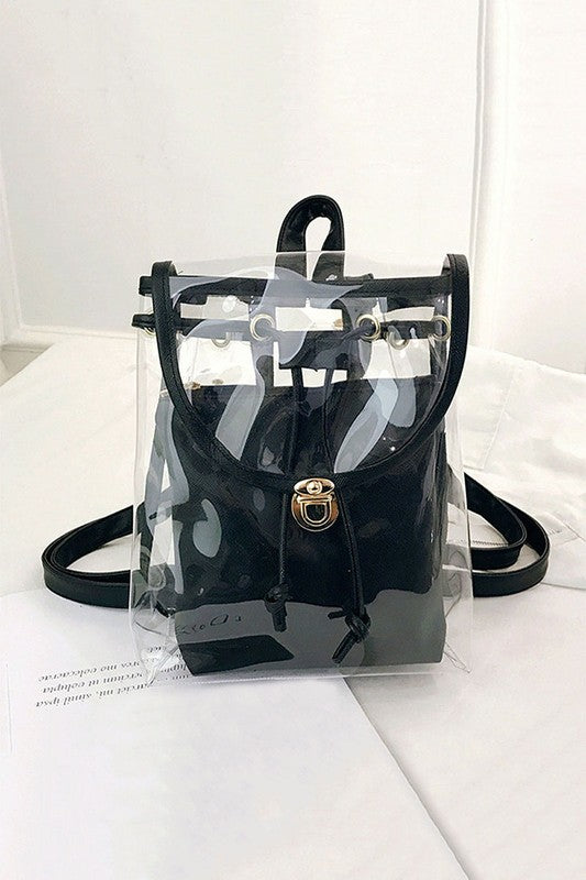 Black Solid Color Edge Clear Mini Backpack