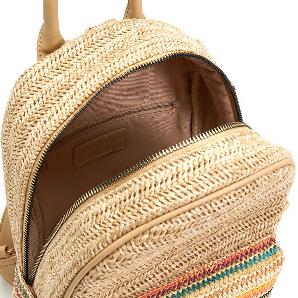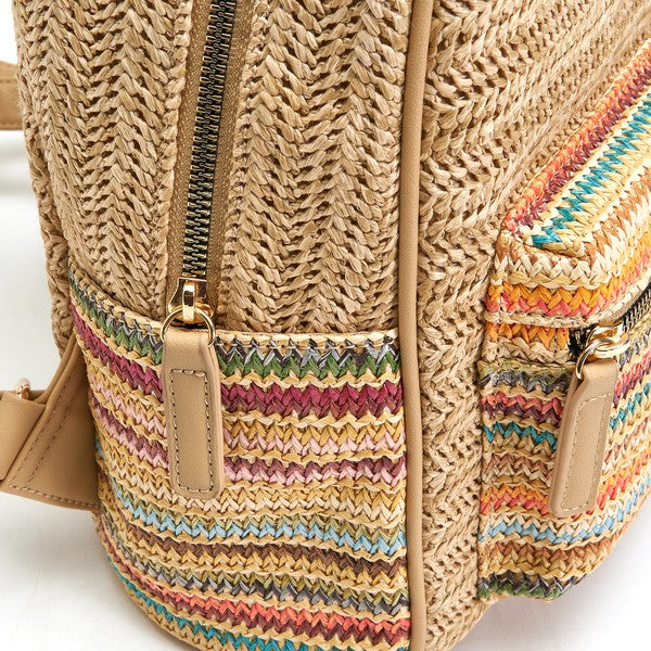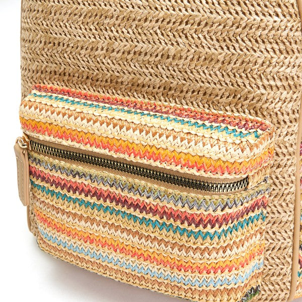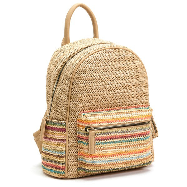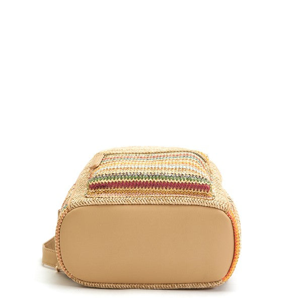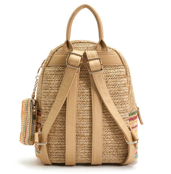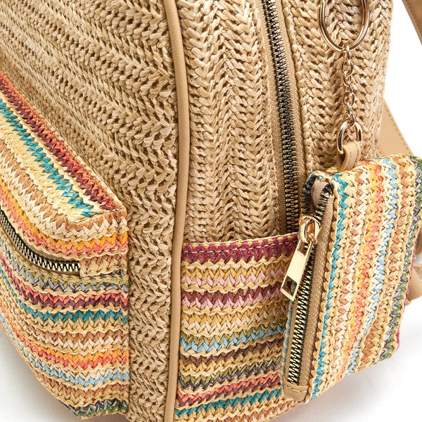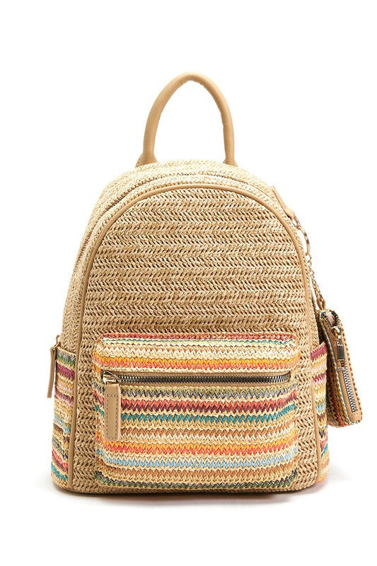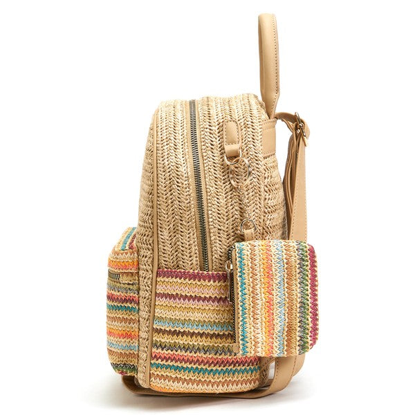 They Said Straws Can'T Be Fun, So You Wear This Backpack To Prove Them Wrong. Be Simultaneously Fun And Down To Earth, And Keep Your Belongings And Money In The Backpack Interior And Side Wallet Respectively. A Straw Backpack That Does The Unexpected Thanks To Its Multicolor Stripe Detail: Radiate Positivity. Same Pattern Wallet Keychain Included.