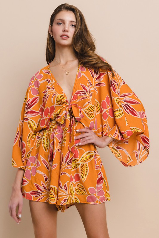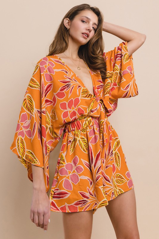 Batwing Sleeved Tie Front Detail Romper With Side Pockets