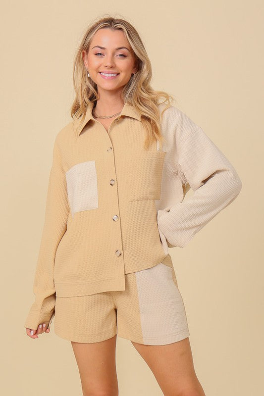 High Waisted Color Block Zip Up Shorts With Back Pockets Matching Jacket -AQMJ9113