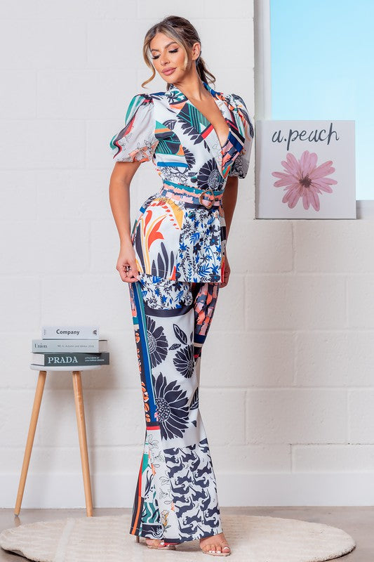 Style: Double Breasted Floral Blazer W/ Pants Set