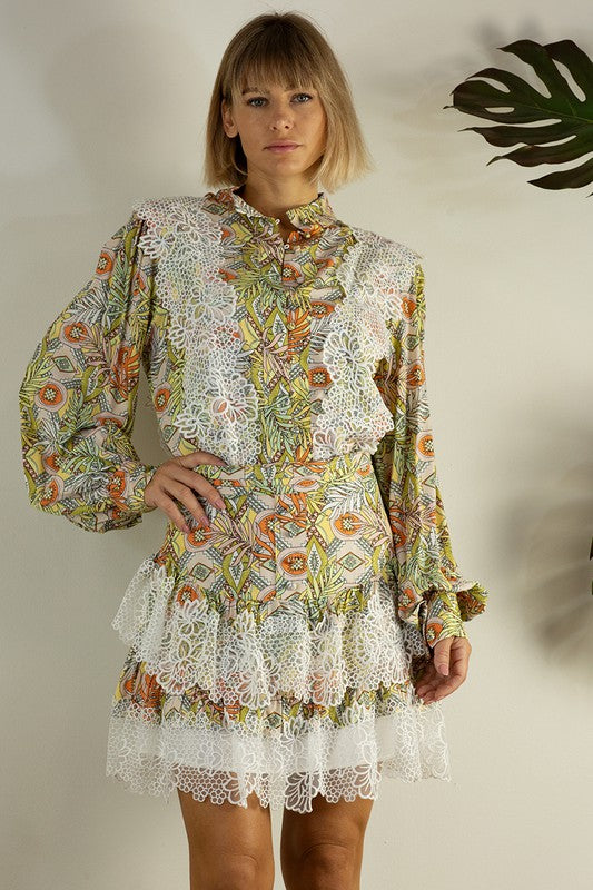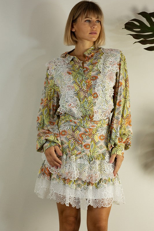 Lace Patched Shirts With Skirt Set. Material And Care: Polyester, Cold Hand Wash With Same Colors.Our Lovely Ceca Is Us Size 2 With The Following Measurements: Height:5'9' Bust:32 Waist:24 Hips:34 She Wears Size Small.
