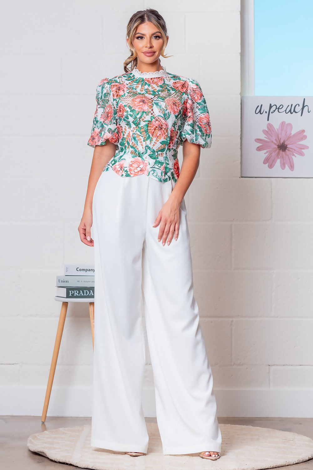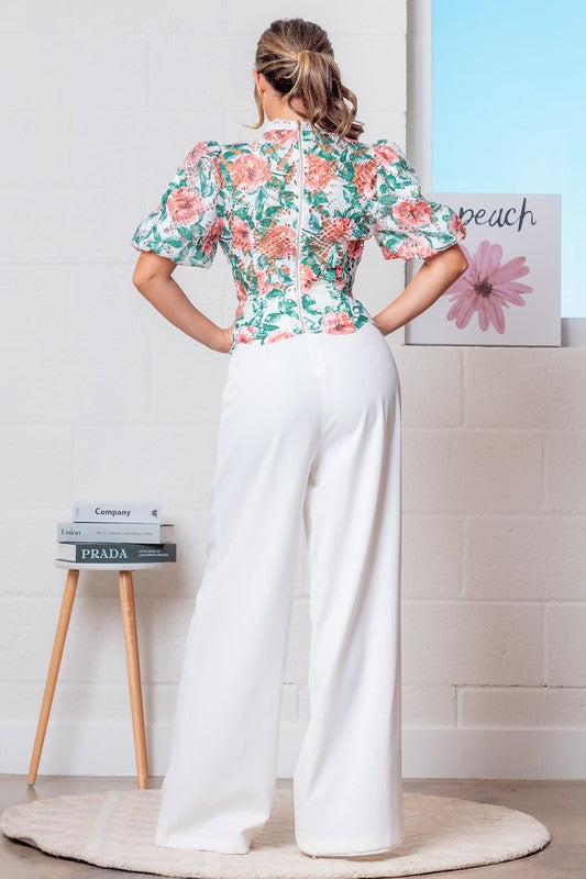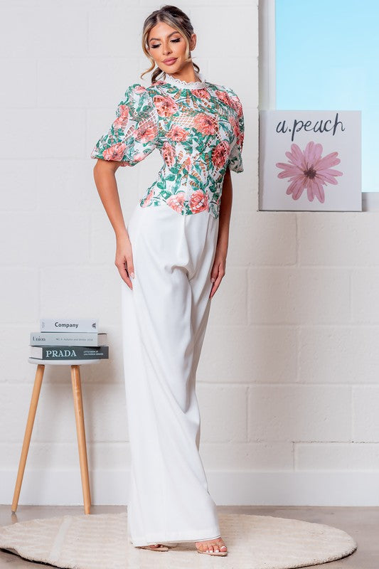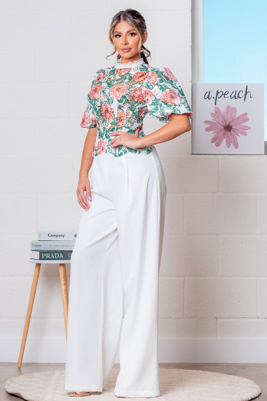 Style: Mock Neck Floral Eyelet Lace Top W/ Pants