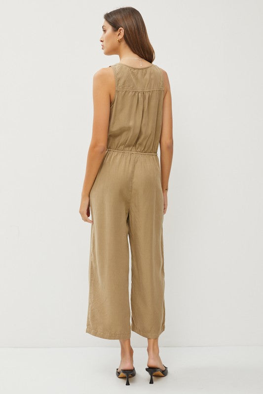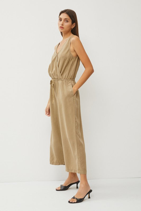 * Soft* Tencel* Sleeveless* Drawstring Waistline* Side Pockets* Wrap Details W Fastener* Wide Leg* Crop Length* V-NecklineFabric Contents100%Tencel
