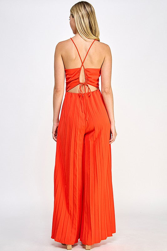 Halter Neck Jumpsuit With Pleated Bottom