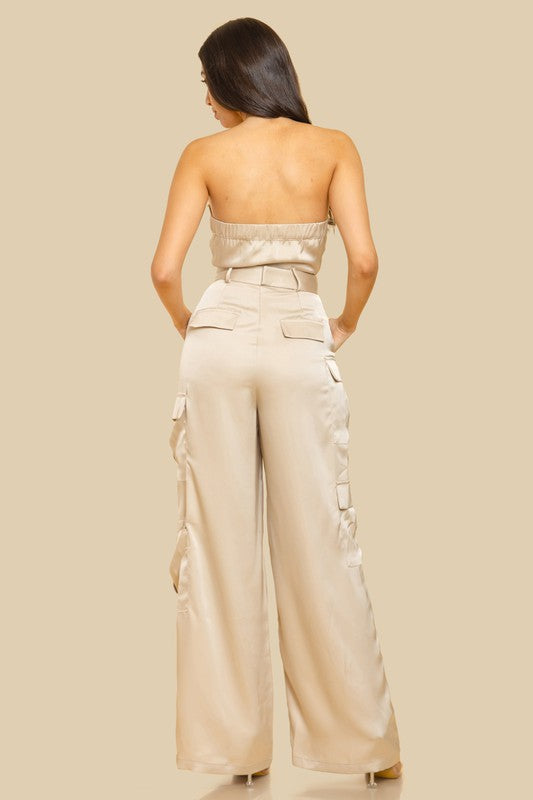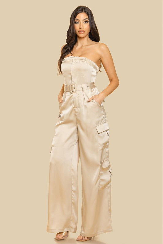 Unbalanced Tube Cargo JumpsuitFeaturing Wide-Leg Silhouette, Side Cargo Pockets And A Matching Wide Belt To Cinch Waist. Self : 97%Polyester 3%SpandexThe Model Is Wearing A Size Small.Fabric Contents97% Polyester, 3% Spandex