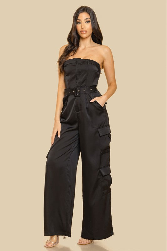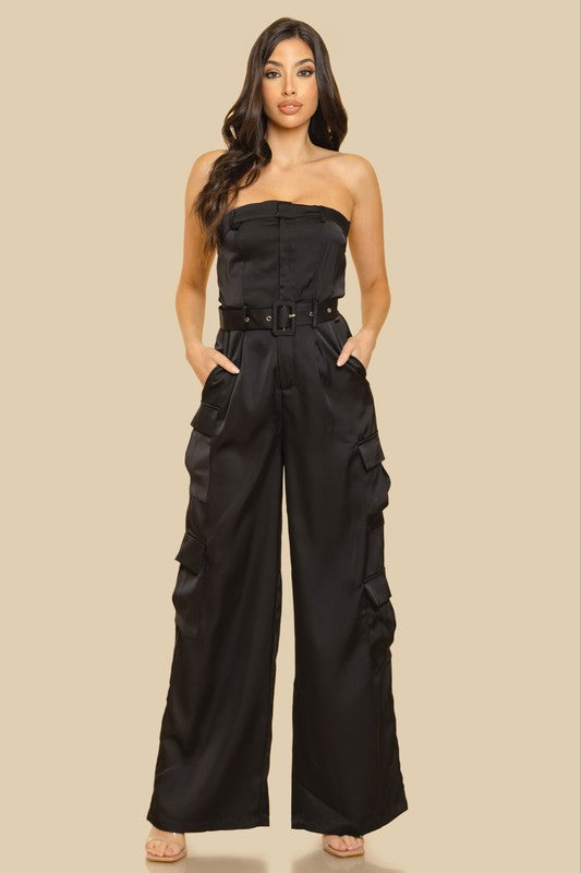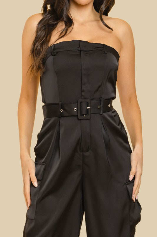Black Unbalanced Tube Top With Pocket Jumpsuit