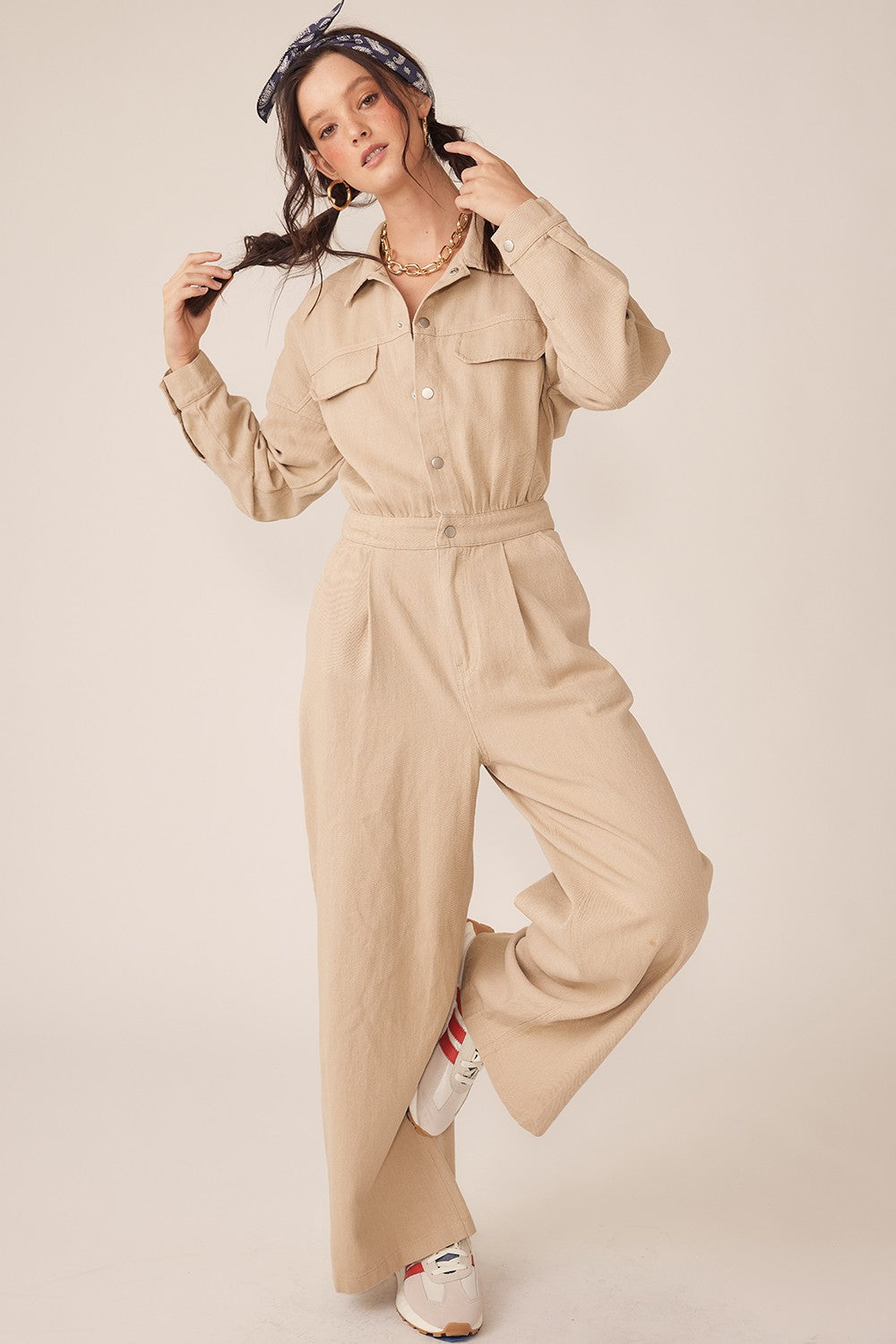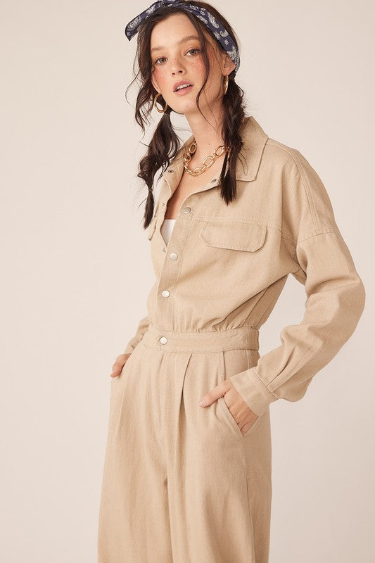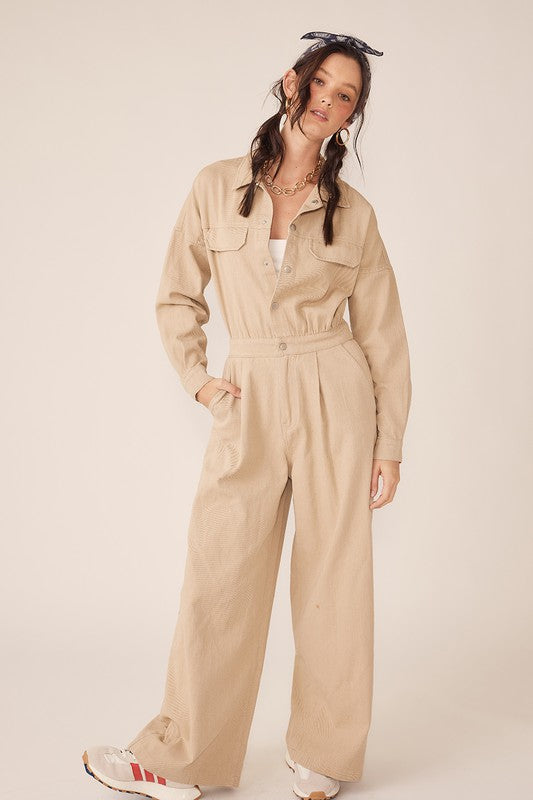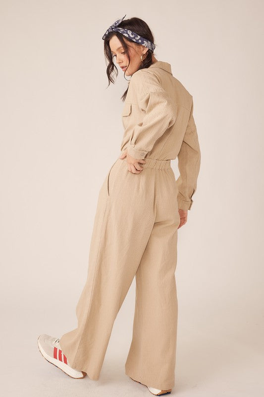 This Wide Legged Jumpsuit Has An Elastic Back Waistband, Button Up Front, And Front Pleats. 100% Cotton