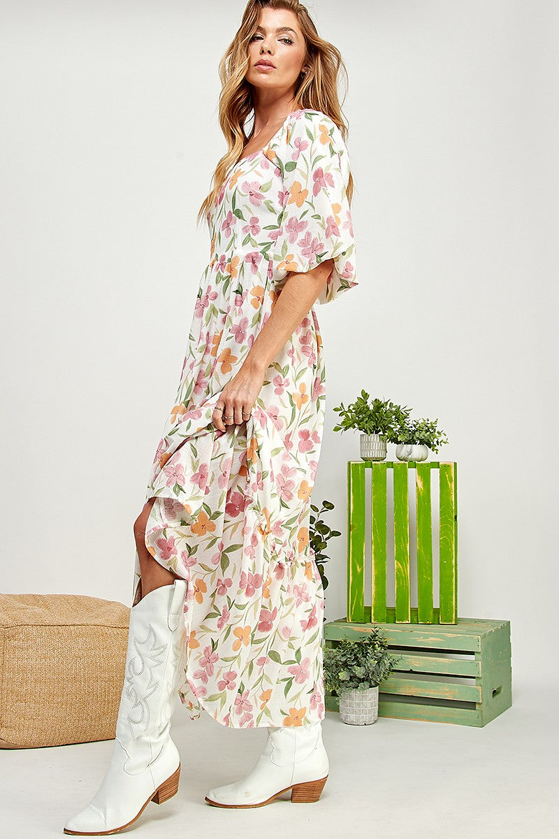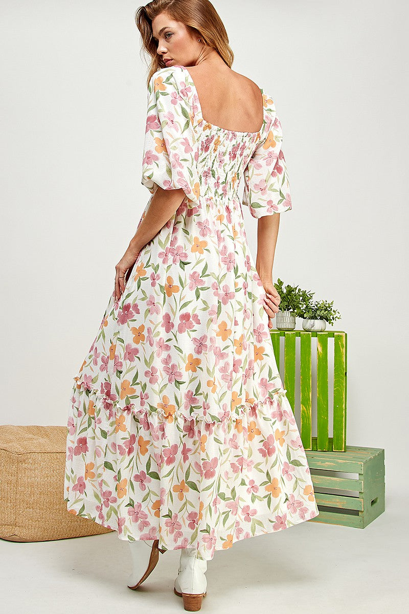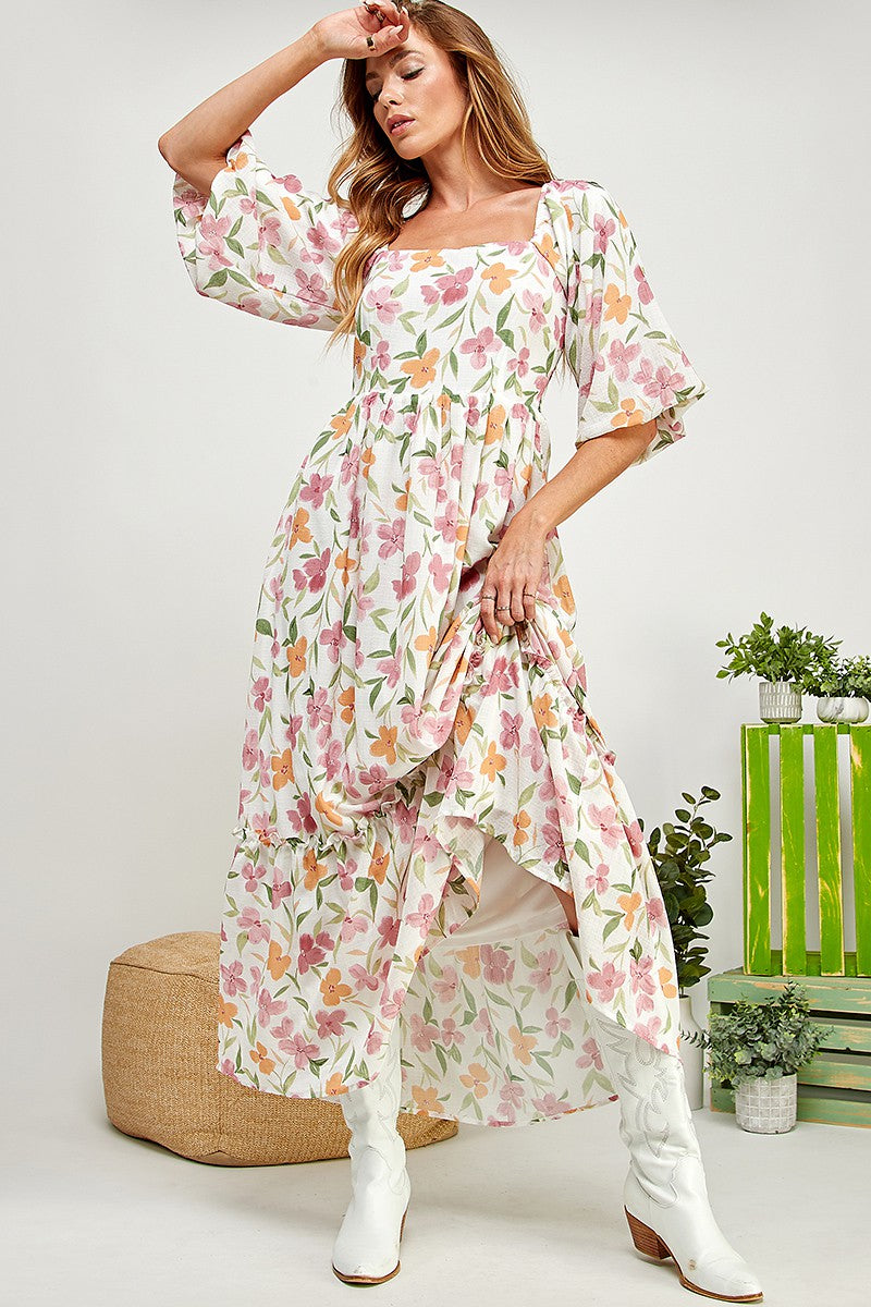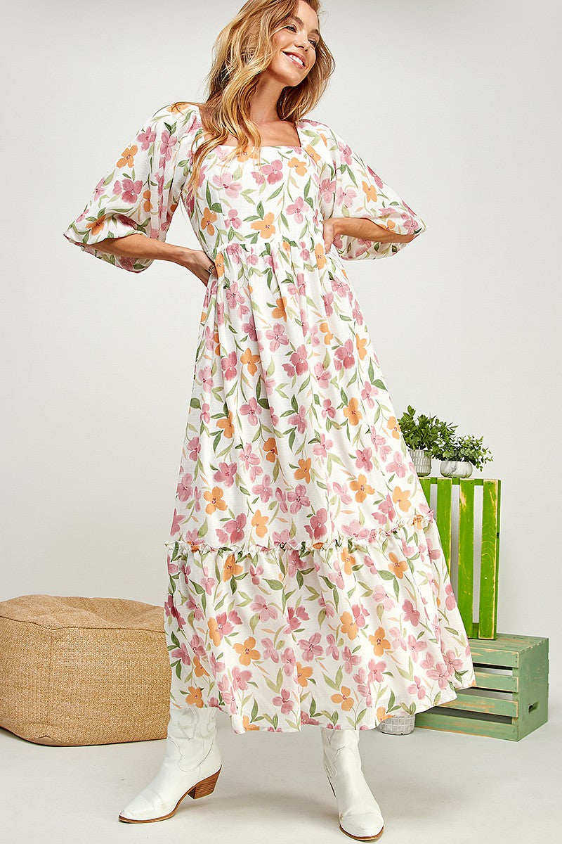 Flower Print Balloon Sleeve Tiered DressModel Is Wearing Small, 5' 10" 33 - 25 - 34Fabric Contents100% Polyester