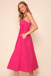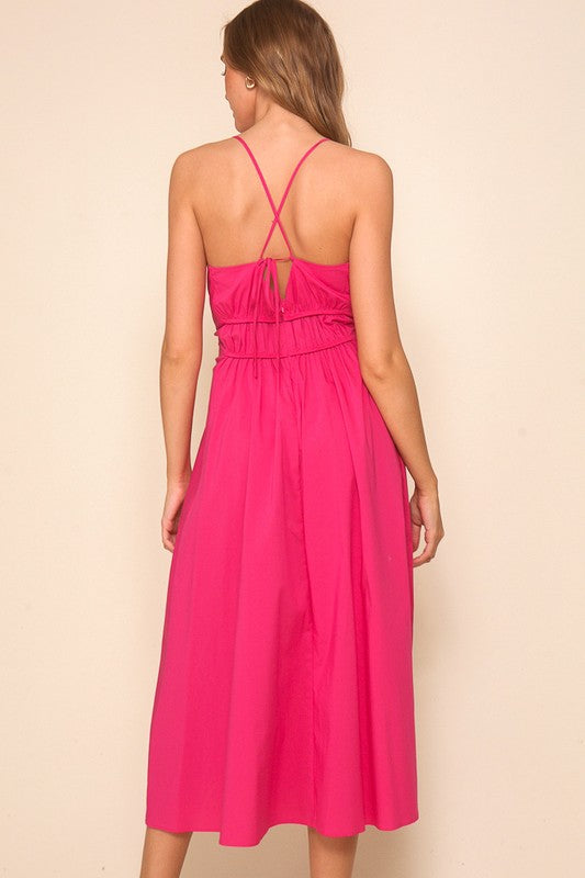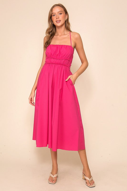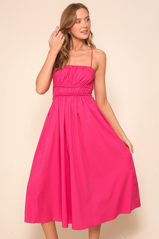Introducing A Captivating Spaghetti Strap Dress Adorned With A Melody Of Midi Notes, Elegantly Draping Over Your Shoulders. Its Elastic Waist Gracefully Hugs Your Silhouette, Ensuring A Comfortable And Flattering Fit. To Add A Touch Of Charm, A Delicate Tie Gracefully Decorates The Back, Tying Together The Symphony Of Style.