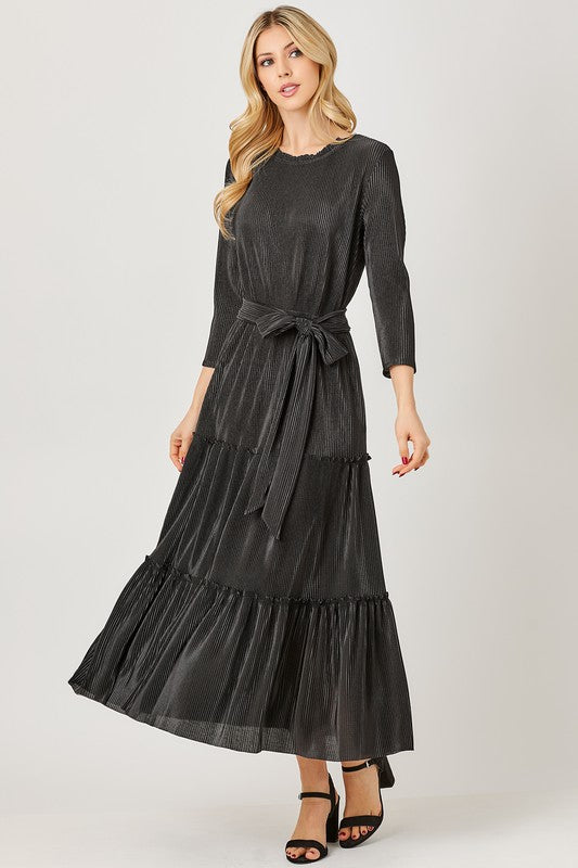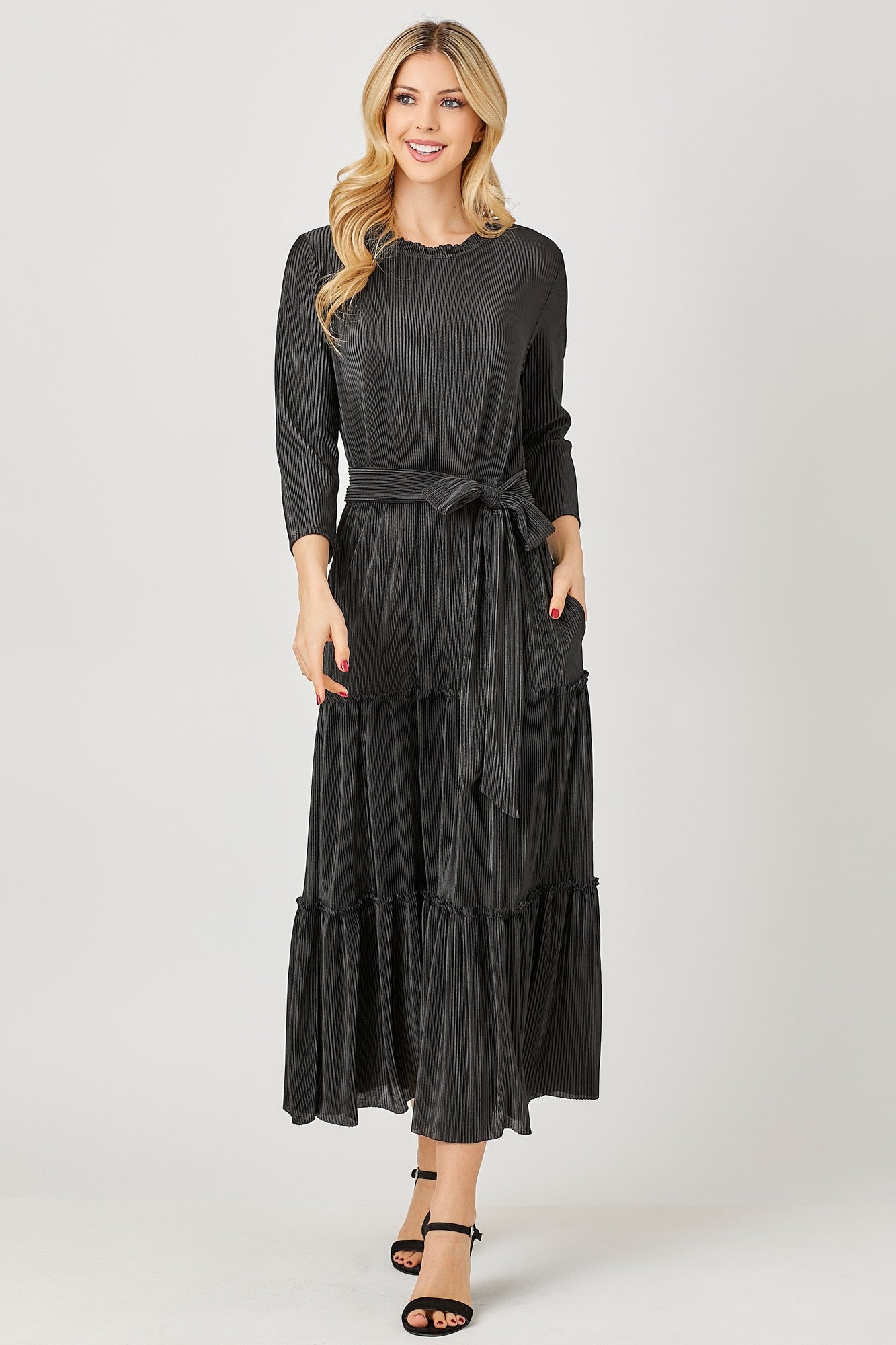 Layred Pleated Maxi Dress With Tie Belt Model SizeModel Is Ht:5'9 Bust:33 Waist:25 Hips:34And Wears Size SmallComfy Tunic Top To Wear Every Day!Fabric Contents100% PolyMade In USA