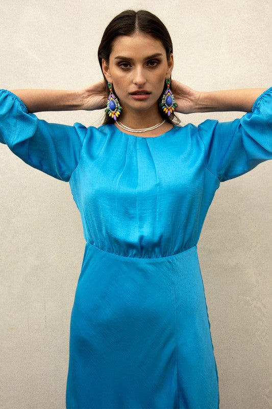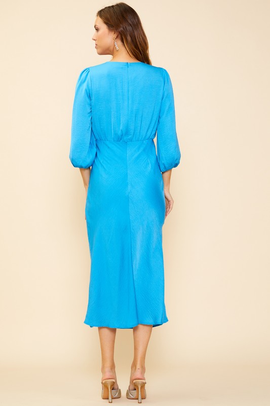 Skies Are Blue | Midi Sleeve Front Slit Dress