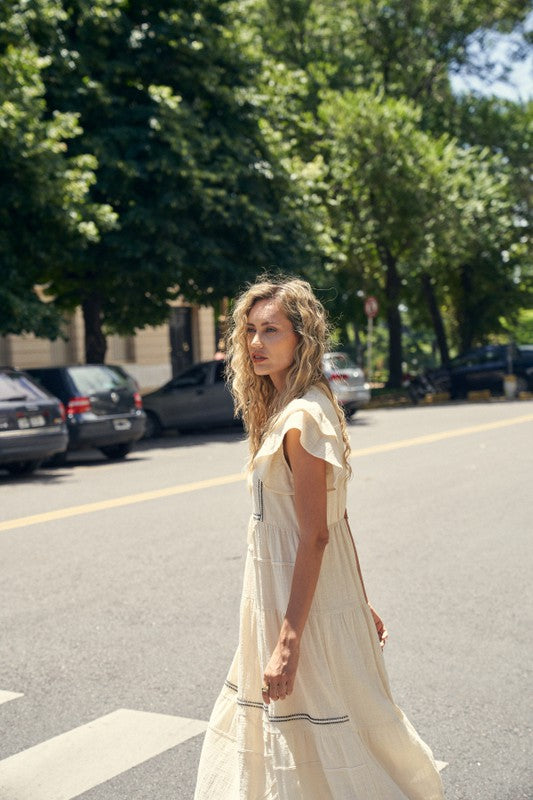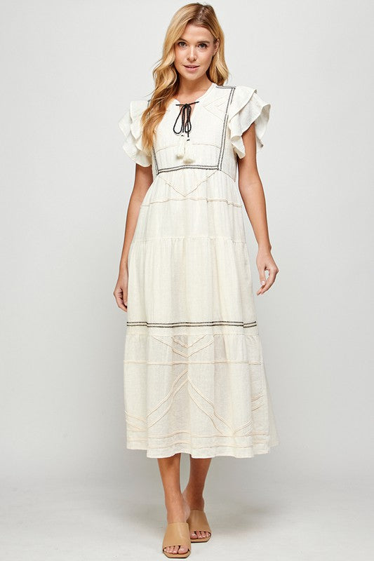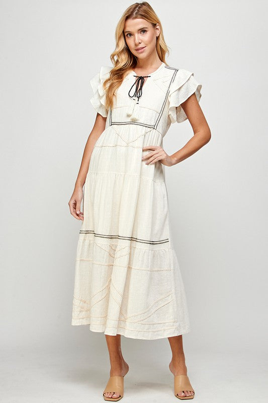 Natural Trim Detailed Midi Dress