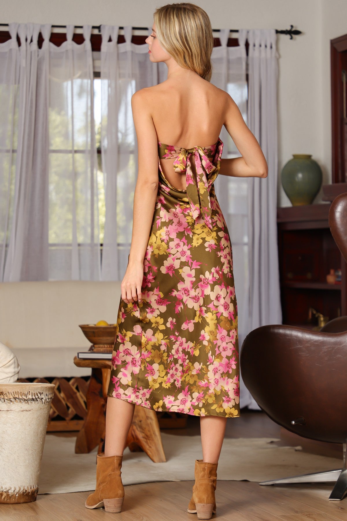 Tube Tie Cowl Back Waisted Midi DressFabric ContentsS: 100%Polyester L: 100%Polyester