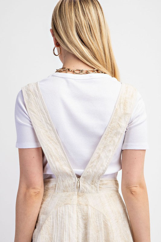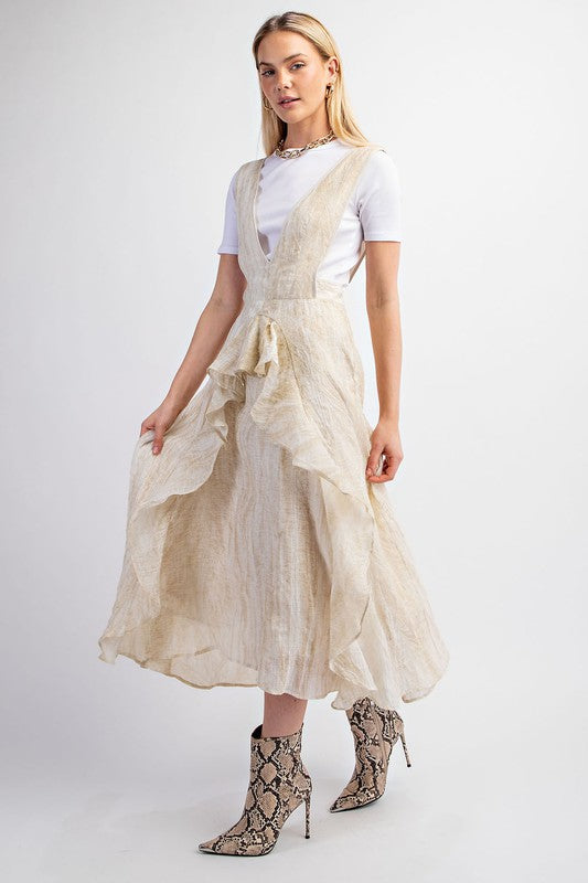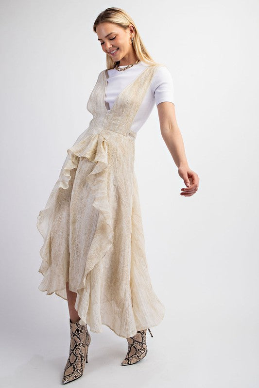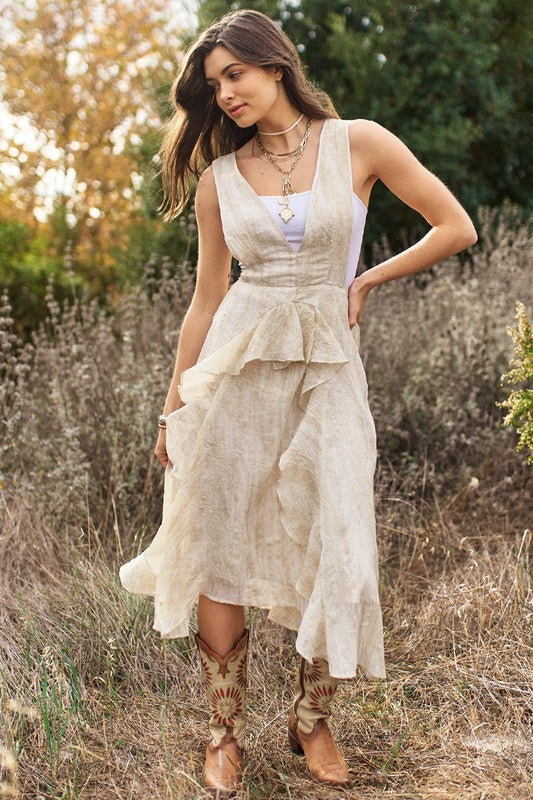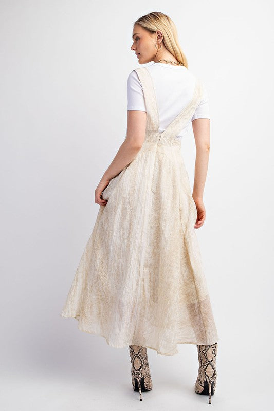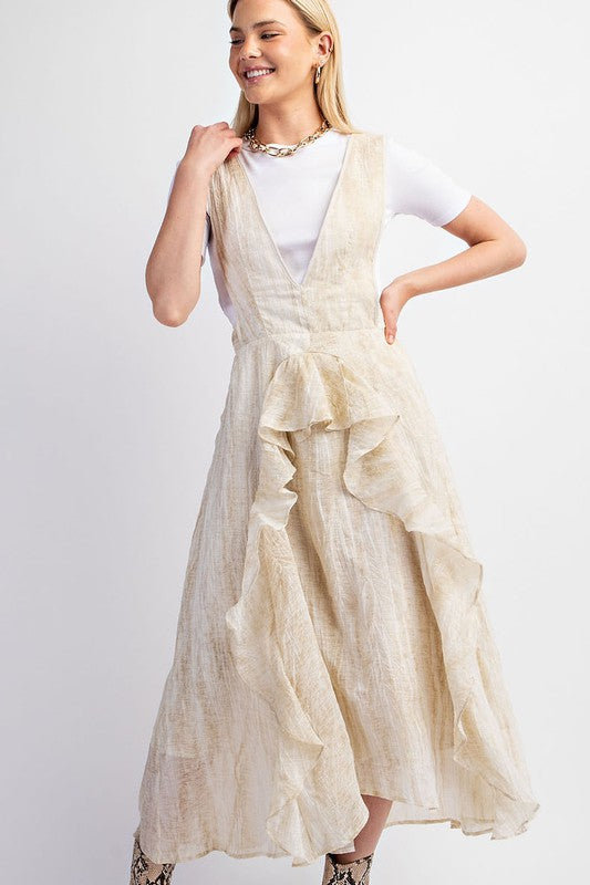 Beige Washed Tie-Dye Ruffled Midi Dress