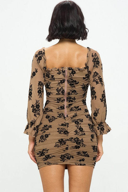 Mocha Long Sleeve Off Shoulder Mini Dress