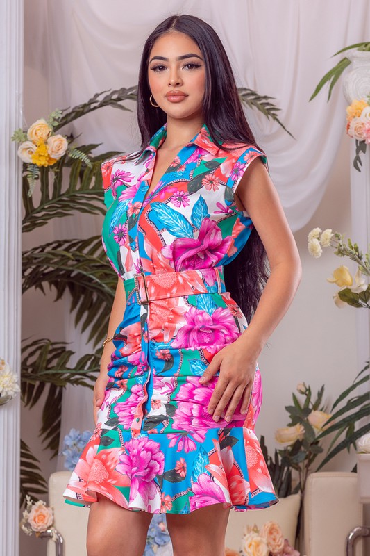 Style: Printed Collar Button Down Mini Dress