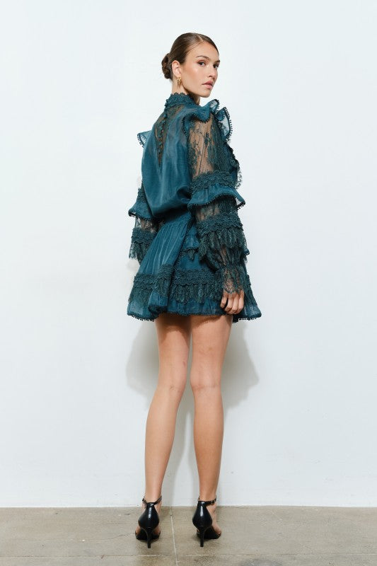 Floral Lace Trim Tiered Mini Skirt