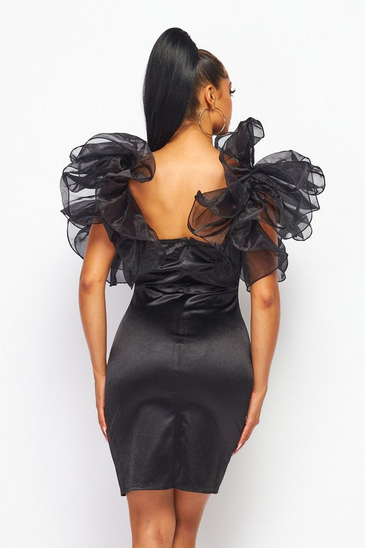 Black Wire Organza Ruffle Mini Dress