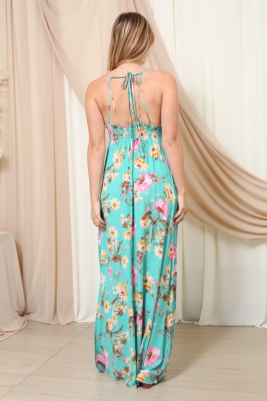Callie Floral Print Maxi Dress With Side Slit And Self Tie Strap Detail