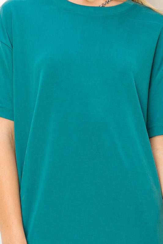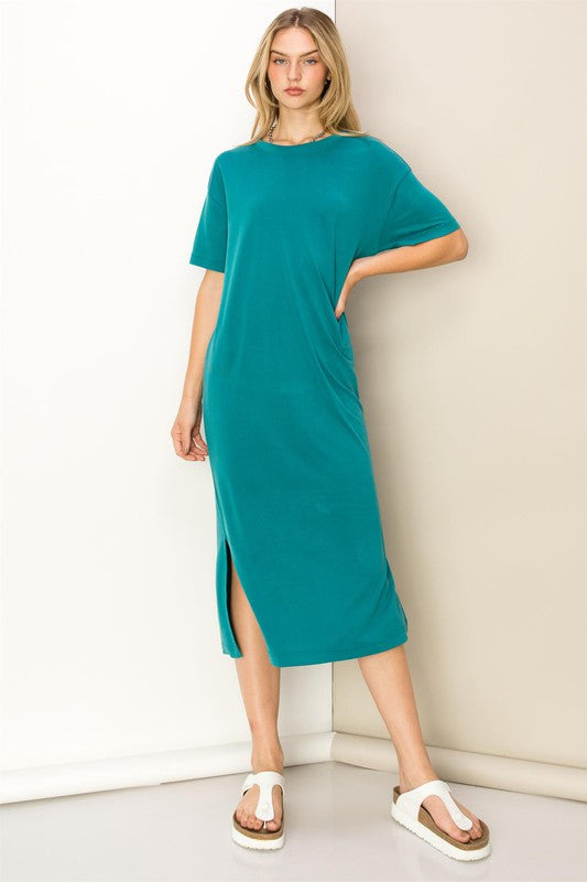 Teal Take A Stroll Side Slit T-Shirt Midi Dress