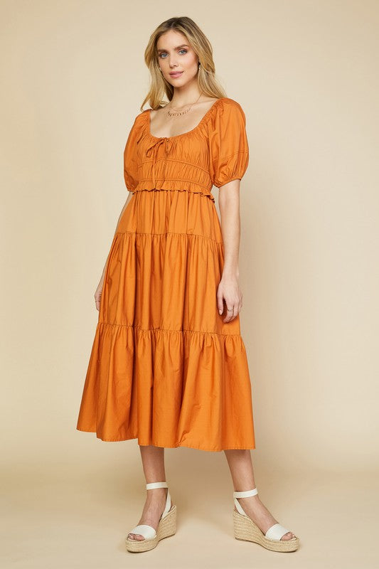 Skies Are Blue Bodice Smocked Midi DressModel Is: Height: 5'8 1/2 Bust: 32" Waist: 24" Hip: 34 Model Wearing Size SmallFabric Contents100% Cotton