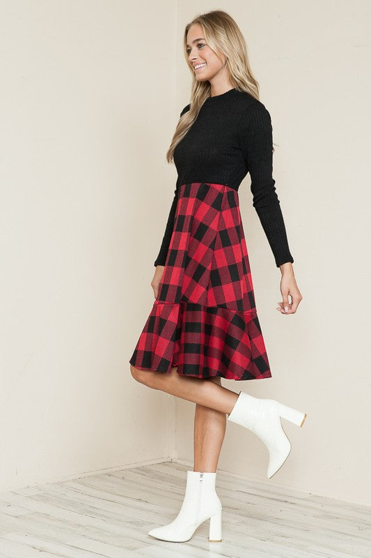 -long Sleeve Dress- Amazingly Simple And Beautiful Dress - Checker Skirt With A Solid Top For A Perfect Match - Elastic Self-tie For Your ComfortFabric Contents95% Polyester 5% SpandexMade In USA