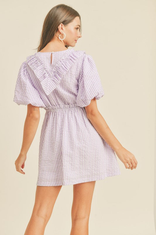Lavender Striped Mini Dress With Ruffle Detail