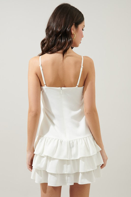 White Chateau Satin One Shoulder Twist Front Midi Dress