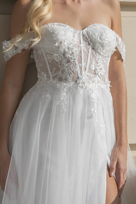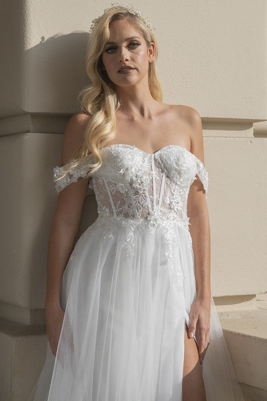 White Off Shoulder Sweetheart A Line Bridal Dress
