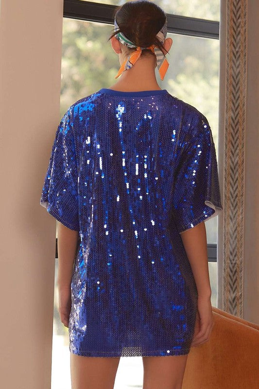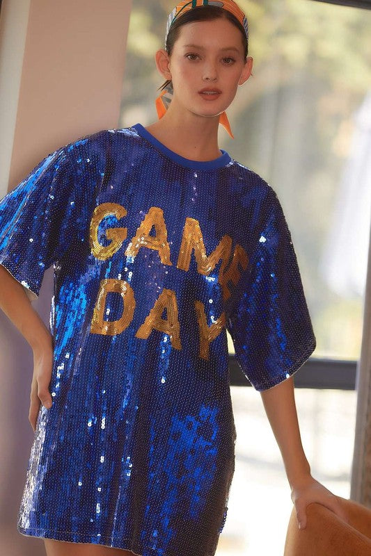 Round Neck Sequin Game Day Letter Tunic Top100% Poly