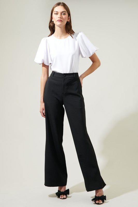 Head To The Office Or To A Formal Event With The Solara Bubble Sleeve Blouse. It Comes With A Crew Neckline And Short Puff Sleeves Along The Side. It Gives A Relaxed Fit To Be Comfortable And An Easy Tie In The Back With A Keyhole. Throw On Your Favorite Black Pants And Heels, And You're All Set To Go.