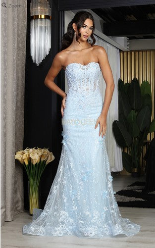 Baby Blue 3D Floral Applique Sweetheart Glitter/Sequin Merma