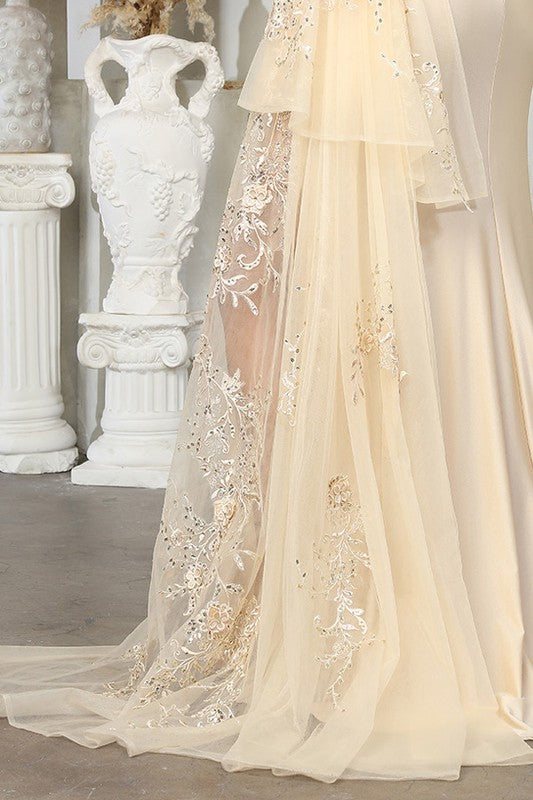 Champagne Bustier Embroidery Top Waist Cape Sheath Dress
