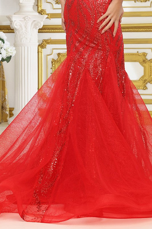 Bustier Illusion Top Deep V Neck Mermaid Dress