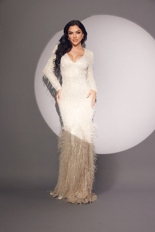 Fully Lined Down To The Hemline- Such A Nice Quality, Same Stretch As Our Mini Version, Long Sleeves, Zipper Back Closure With Train. Model Wears Size Small- True To Sizing. Model Is 5'8" And Is Wearing 4.5 Inch Heels For Reference.