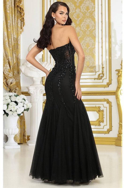 Black Embellished Sweetheart Bustier Top Mermaid Dress
