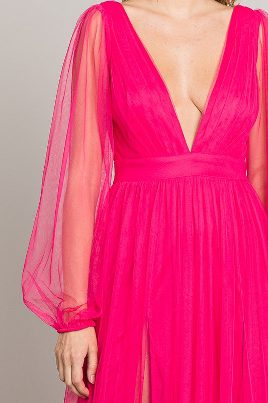 Fuschia Mesh Long Dress