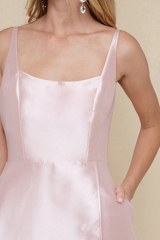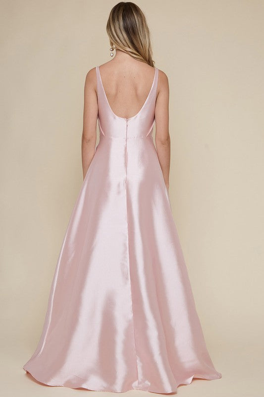 Blush Ladies Sleeveless Taffeta Slit Maxi Dress