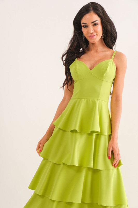 Lime Sleeveless Tiered Midi Dress