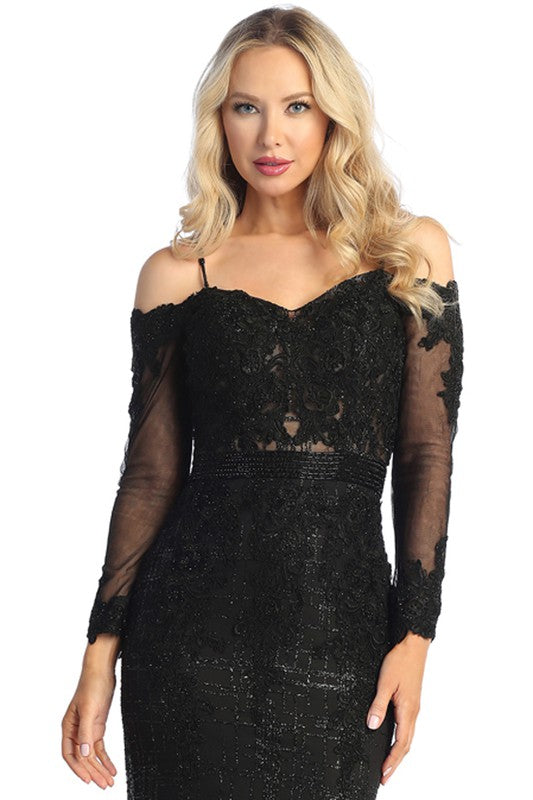 Long Sleeve Embroidery Glitter Trumpet Dress