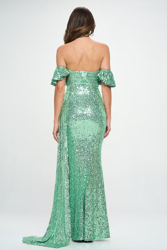 Mint Off-The-Shoulder Sequins Maxi Formal