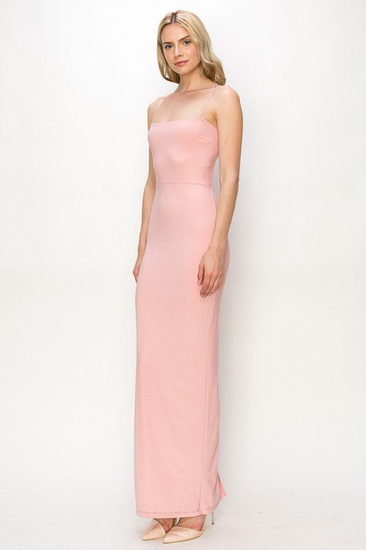 Solid Ity Pd With Glitter Straight Neckline Crossed Back Bodycon Maxi Dress