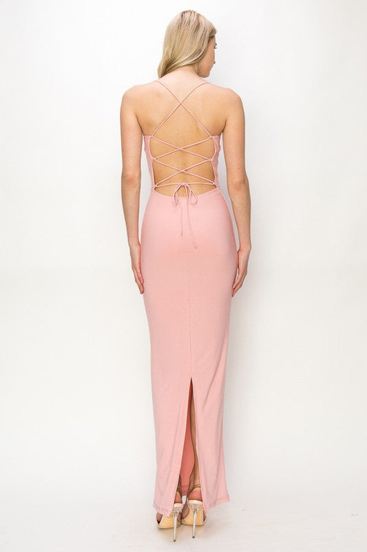 Pink Glitter Crossed Back Maxi Dress
