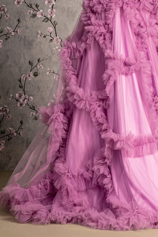 Purple Strapless Sweetheart Illusion Top A Line Ruffle Dress