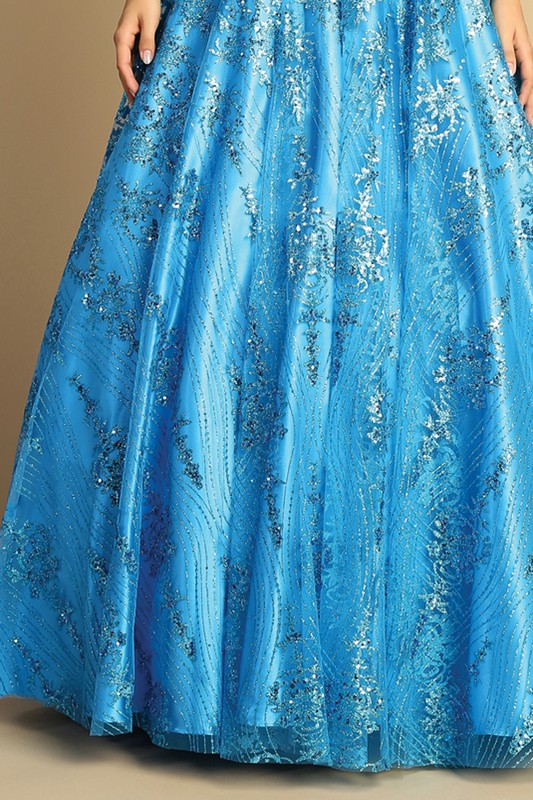 Turquoise Spaghetti Straps A Line Glitter Print Dress