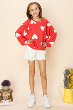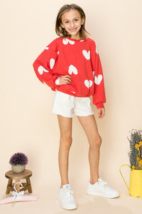 Girls Loose Fit Heart Print Terry SweatshirtFabric:78%Poly,18%Rayon,4%SpanFrench Terry- Made In USA* Kid Model Is 47" And Is Wearing A Small(6-6x).