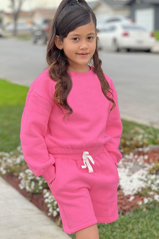Toddler's 2 pc Short Jog Set W/ Ribbed Neckline & Smocked Elastic Waistband