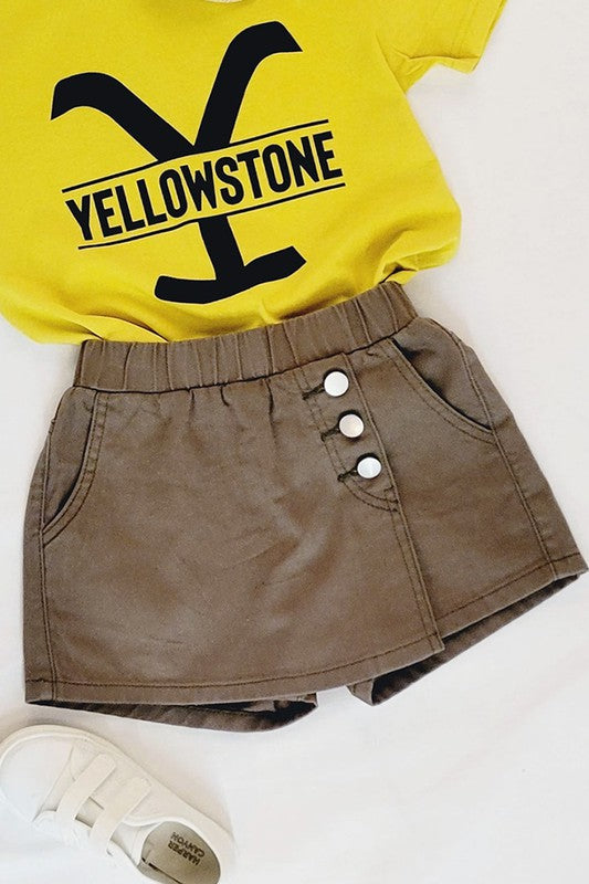 Elastic Waisted Denim Skorts With Button DetailsModel SizeHeight: 3'4"Size: 4t (Model Is Wearing S)Fabric Contents100% Cotton